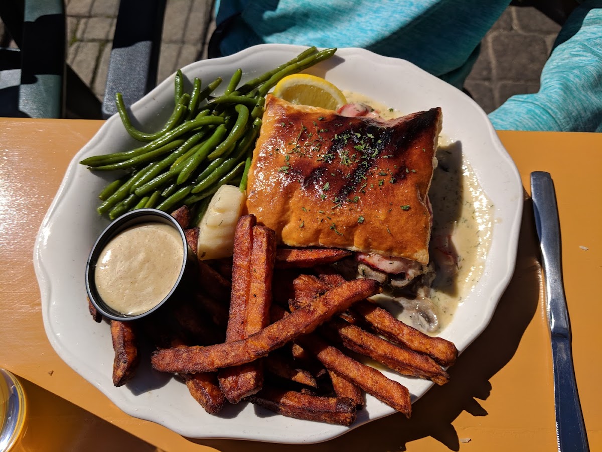 Had a wonderful lunch and such an amazing view when the weather is good to sit outside. Had the steak salad with side of roasted Brussel sprouts. So tasty.
